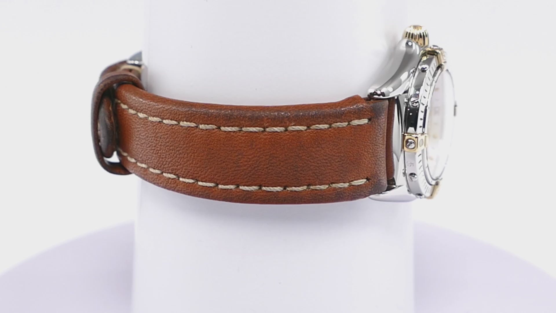 Material: Stainless steel case with solid 18k yellow gold accents, genuine leather strap, scratch-resistant sapphire crystal