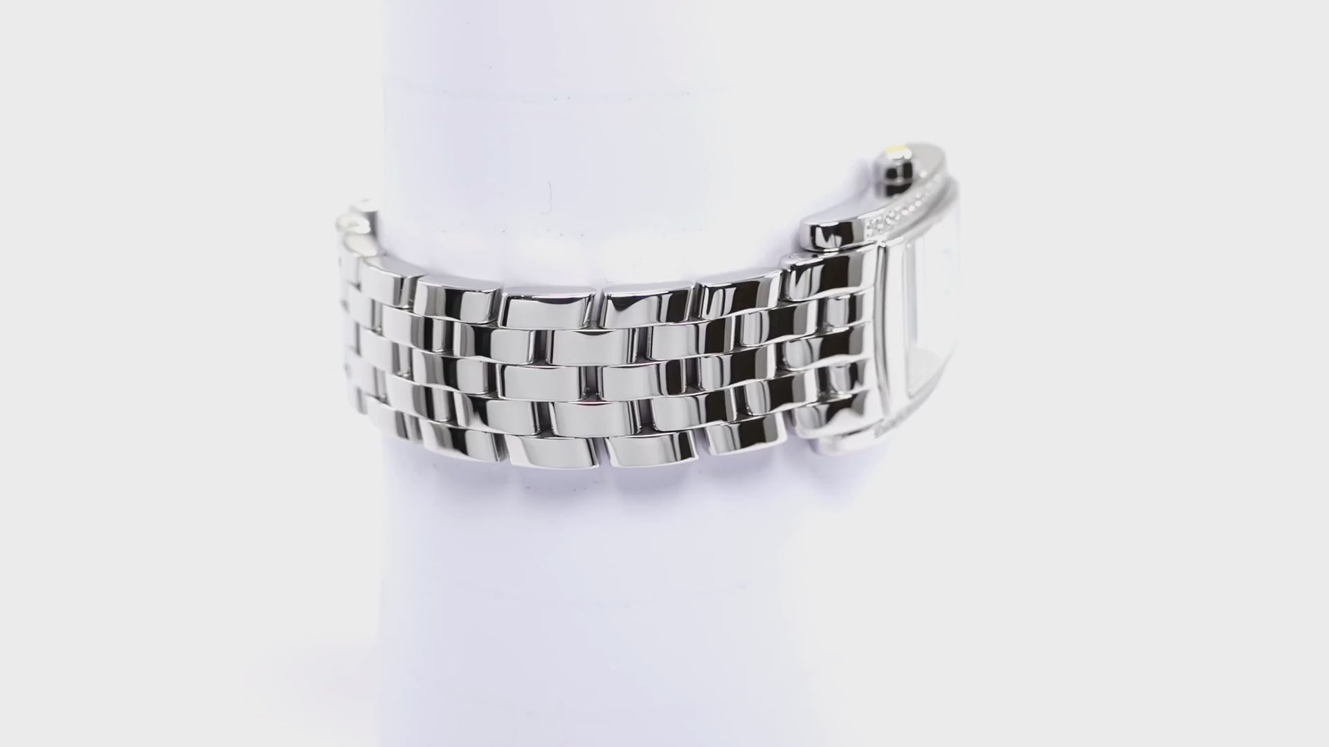 Features: | Seconds sub dial, rectangular curved case design, iridescent Mother of Pearl dial with diamond markers |