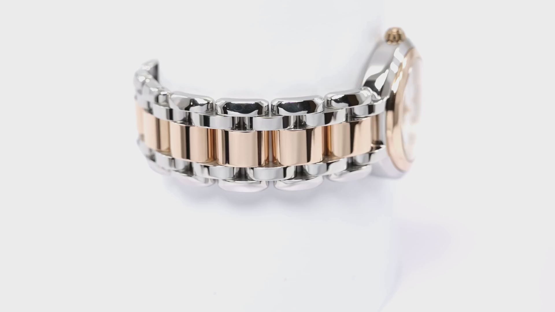 Material: | Stainless steel and solid 18k rose gold case and bracelet, scratch-resistant sapphire crystal |