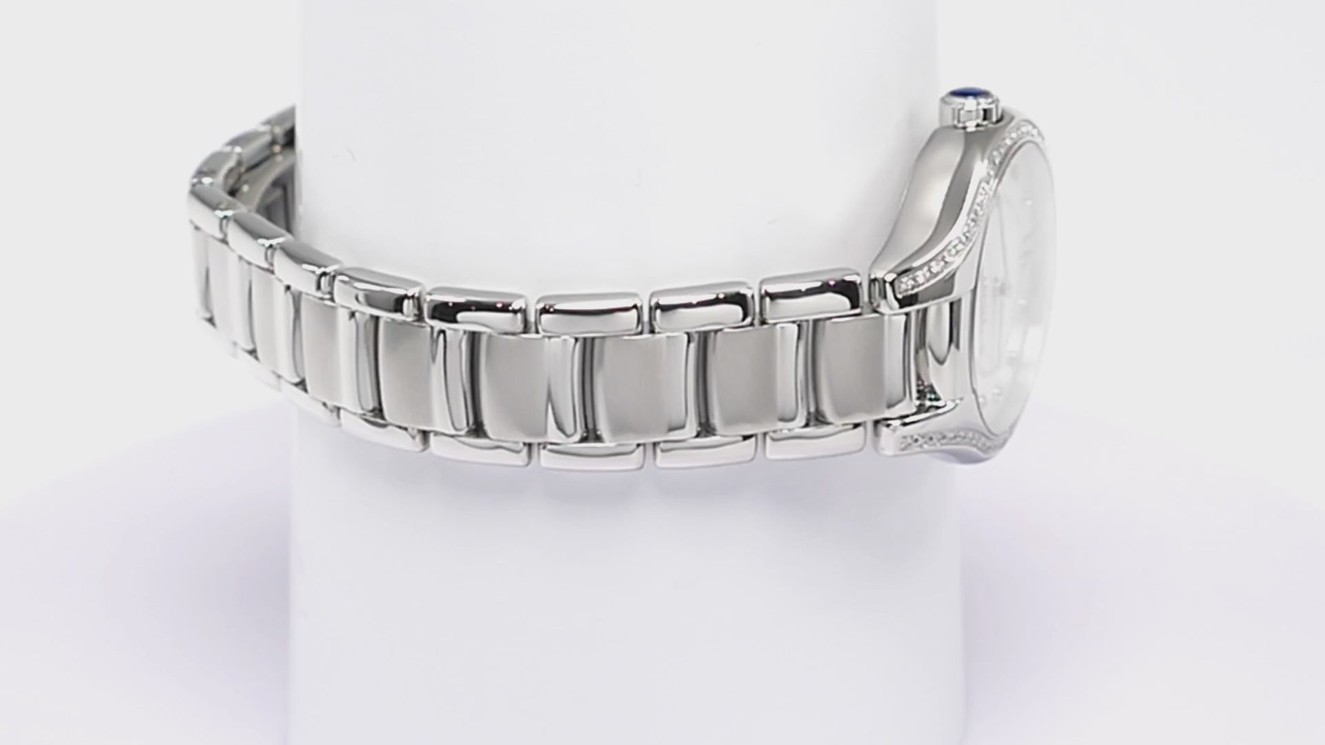 Material: Stainless steel case & bracelet, genuine diamonds, scratch-resistant sapphire crystal