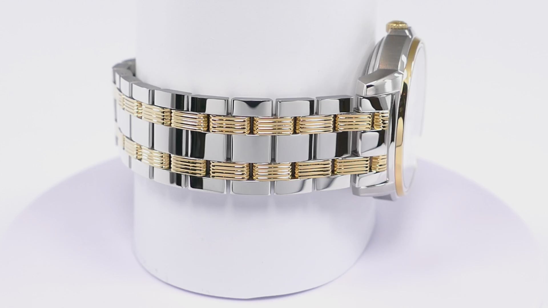 - Tissot stainless steel polished finish bracelet with gold PVD accents